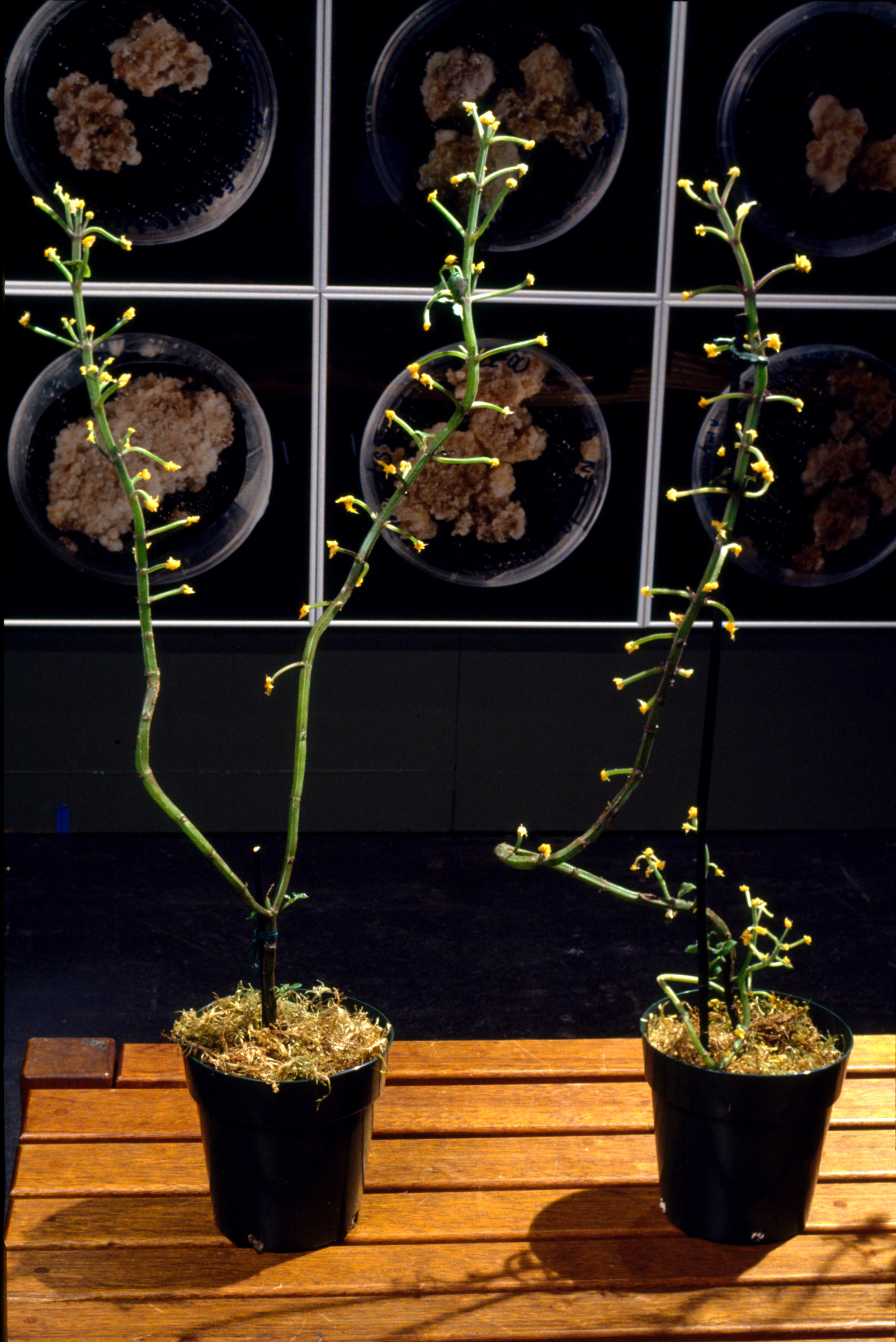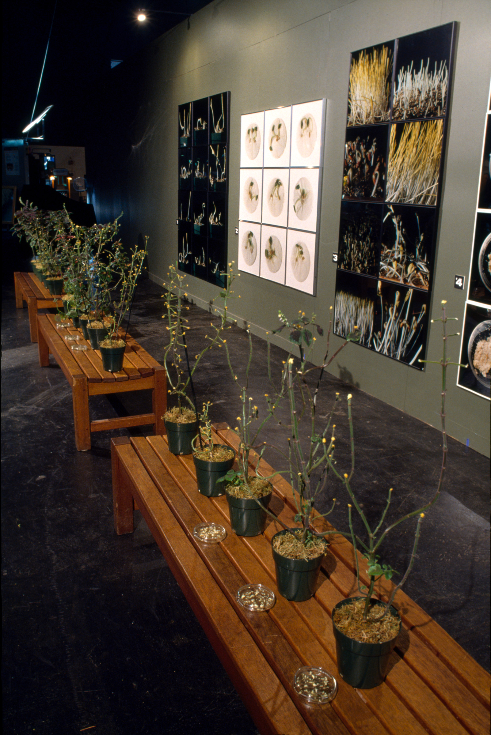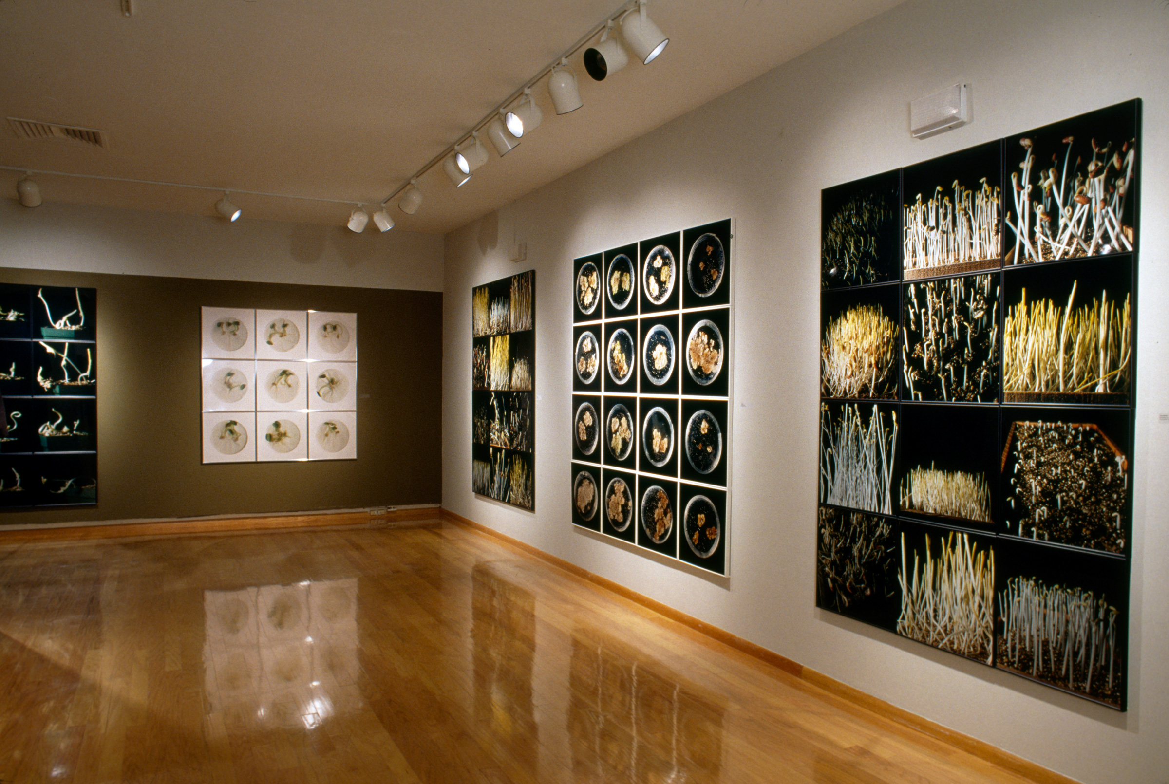 By precise perturbation and observation, botanists accumulate facts and put forth hypotheses (stories) about the life of plants. Some experiments are so definitive in the construction of these stories they become classics and are widely repeated in the science classroom. The same species of plants are grown over and over, the same manipulations performed upon them as pivotal experiments are replayed. Like circus trainers, we induce our subjects to perform their well-rehearsed tricks. But after the show is over and the audience has gone home, the experimental plants grow on. In Deviation From Normal, I am interested in how such manipulated plants continue to grow, in individuality vs. similarity, in the way components form wholes, in the way science is constrained by logic.
