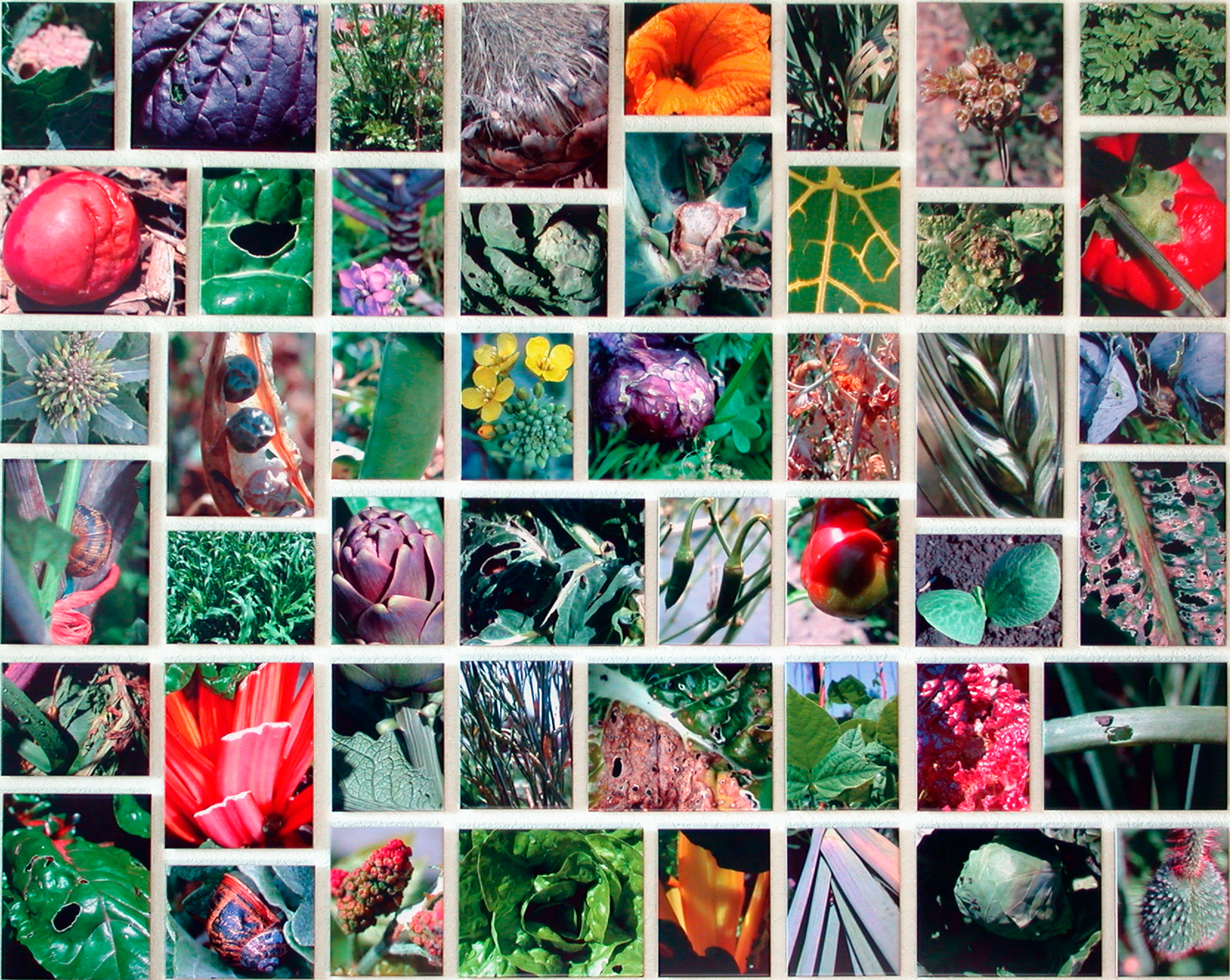 Transubstantiation (2006) completes the garden cycle. What we call “decay” is simply the process of plant bodies being transformed into bodies of microbes. Even before transubstantiation of the entire dying plant, portions of the plant that have served their purpose become substrate for fungi and bacteria. If tissue is dying, such as the spent petals on a squash plant, it is simultaneously becoming other lifeforms. Without transubstantiation, dead bodies would quickly tie up normally recycled molecules, and the cycles of birth and death would end in stasis.